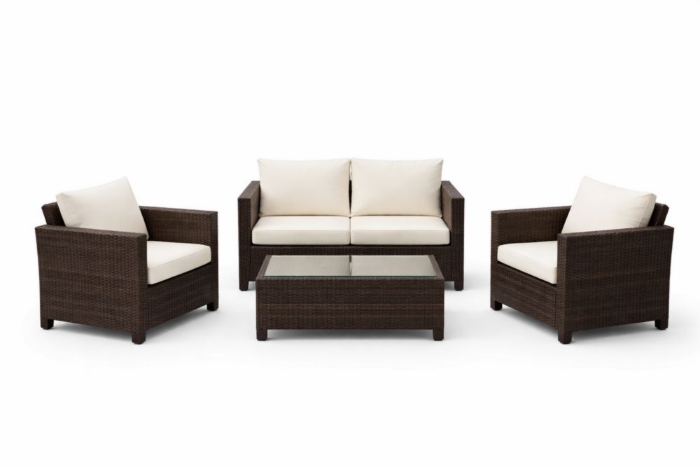 Ensemble salon de jardin résine tressée coussins crème